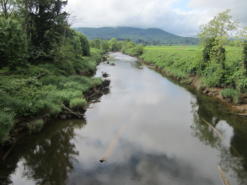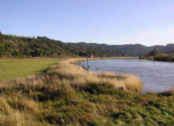 A low elevation gradient river meanders to the mainstem Siuslaw river with a mixture of salt and freshwater wetlands