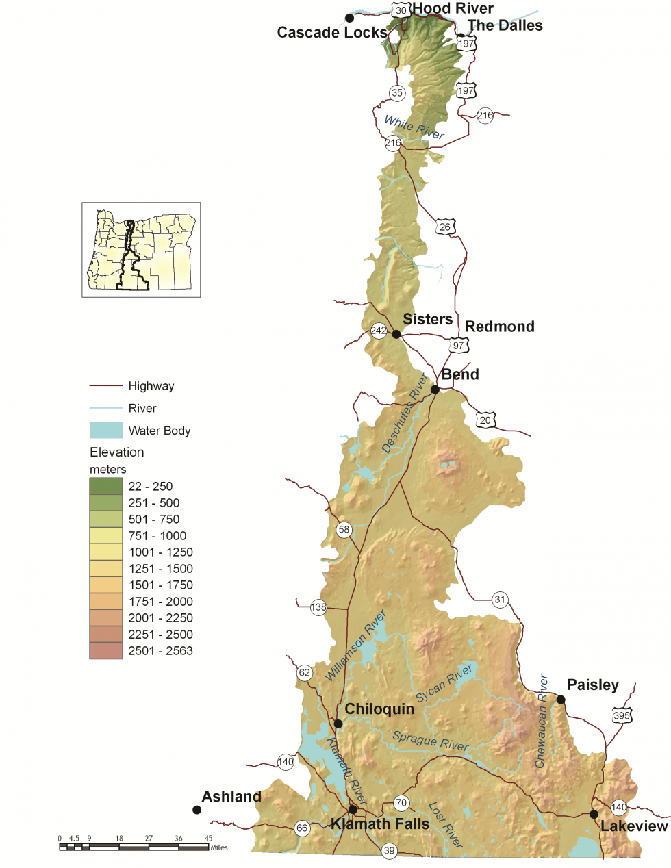 Deschutes, Hood, Klamath, Metolius, Link, Williamson, Sycan, and Sprague