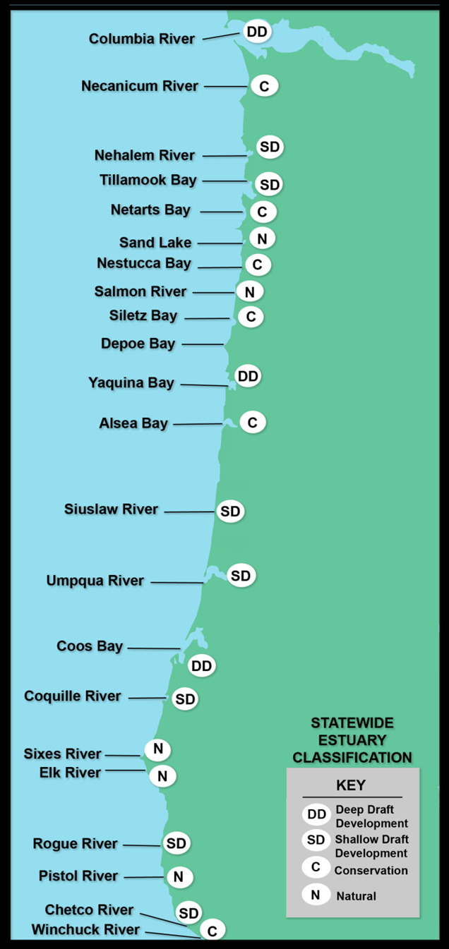Coordination among agencies, local governments and tribes is a high priority. Because estuarine issues are complex, clear identification and communication of conservation opportunities, goals, and threats should precede management actions, ensuring that all interests are considered and coordinated. Prioritization should include updates to estuary management plans to incorporate the best available data for decision-making, including new challenges from climate change such as sea level rise and warming ocean temperatures. For example, in 2024, the Yaquina Bay Estuary Management Plan was the first plan in more than 40 years to be adopted and can be a model for other jurisdictions to utilize. A process to provide advanced notice and share information among federal, tribal, state and local governments should be developed to assist with conservation, protection, enhancement, and restoration of estuarine habitats.