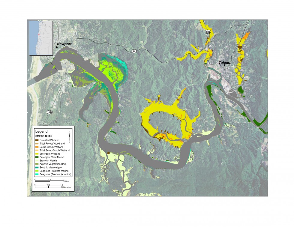 Figure 6.10. Map of Yaquina Bay with CMECS Biotic Components.