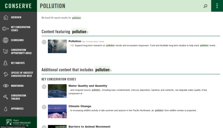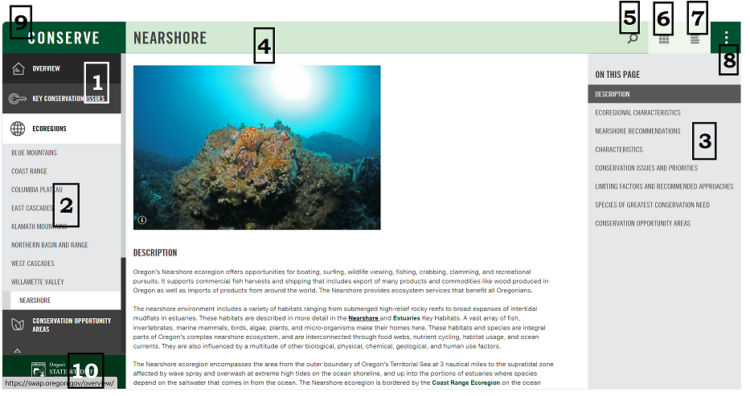 - The primary State Wildlife Action Plan (SWAP) sections are listed in the left hand menu, available from every page within the swap.oregon.gov website.