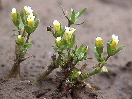 Boggs Lake hedge hyssop is found in semi-aquatic habitat. This species typically occurs in mud or damp soils at lake edges, generally around 5360 feet altitude. Occupied wetlands are often surrounded by sagebrush flats.