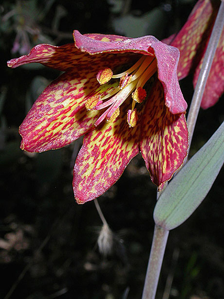 Gentner's fritillary occurs in a wide range of habitat types, including woodlands dominated by Oregon white oak, moist riparian areas, Douglas fir forests, and serpentine sites. This species generally prefers ecotones between meadows and open woodlands.