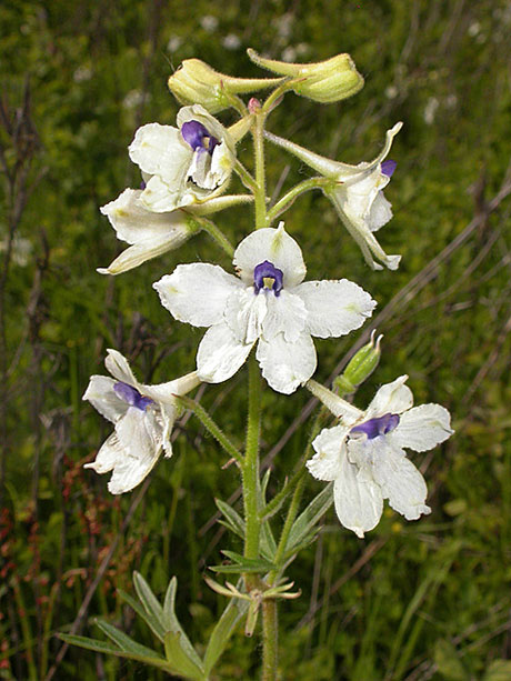 Peacock larkspur is found in slightly higher and drier microhabitats within wet prairies and shady edges of Oregon ash and Oregon oak woodlands.