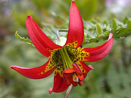 The western lily occurs in bogs composed of damp, slightly acidic and organic soils. This species is generally associated with small shrubs with nearby sunlight, and may use shrubs for mechanical support.
